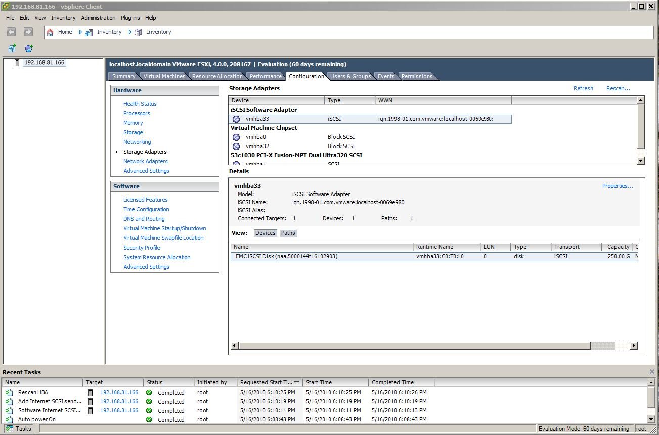 Initial setup was super easy, I just inserted the CD into my PC and walked along with it. It took maybe 5 minutes to setup all together. I started exploring the web interface and it was very easy to navigate and to configure. I first created a share for ISOs and then found how to turn on the iSCSI target service. I then created a 250GB iSCSI target… the disks started to chatter like crazy (did I mention that if your setting this on your desk and hate noise its probably not for you?) as it appeared to zero out the partition…all 250GB. So since it seemed fairly slow I went and found some stuff to do and stopped back in like 3 hours and it was all finished. I don’t think it took nearly that long to complete, but I got busy and cant say exactly how long it did take.