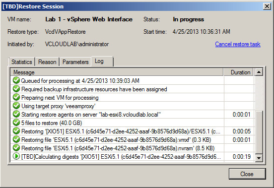 My hope was that the vCloud director product from Veeam would add a backup and restore feature to each separate vcloud user’s login…now THAT would be phenomenal.