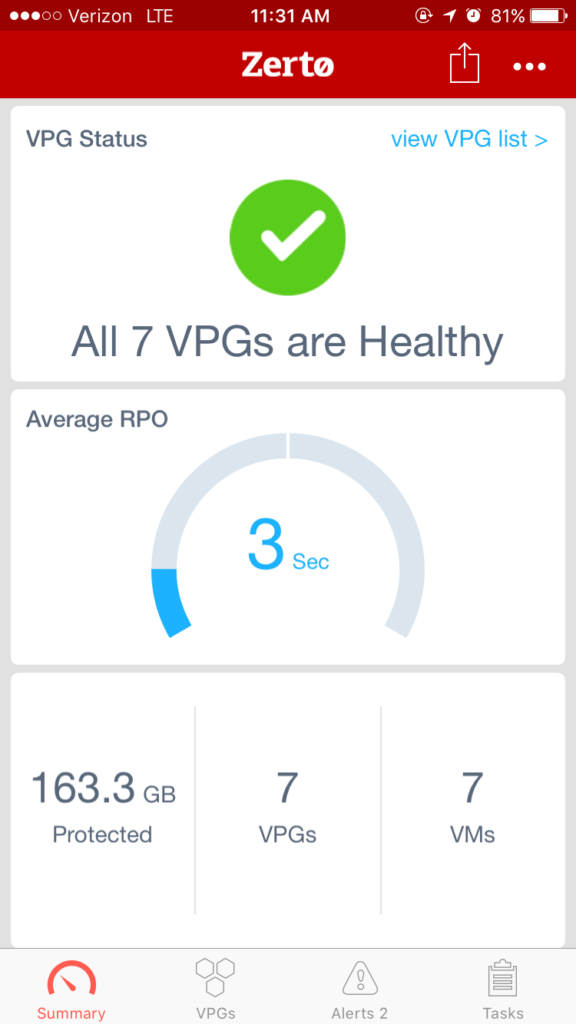I know what you’re thinking. If you have kids like I do, you know that they love to go into whatever apps are available. Have no fear; Zerto Mobile is currently for MONITORING only.
